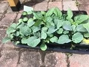 After a few weeks outside the plants will have grown to the size shown to the right. You can start to take some leaves from plants at this time, or wait until they are larger. If you want your greens to last through the summer, only cut a few leaves from each plant at a time so that the plant has time to grow new leaves.