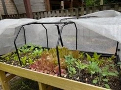 Raised beds are a great option for planting greens in small spaces or patios. The photo below shows newly planted greens.